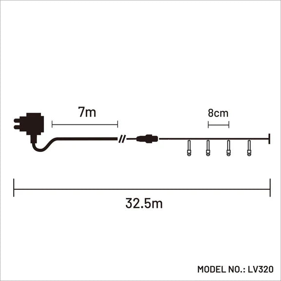 The 320 LEDs come in a variety of colour options to offer a beautiful illumination for the desired ambience and have eight operating modes to suit the entertaining theme. The Frosted String light can be extended to carry on the decorative lighting with a maximum of four sets off one transformer and can be used indoors and outdoors.