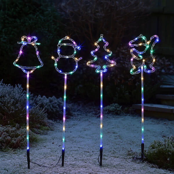 Path light with santa, tree, bell and snowman